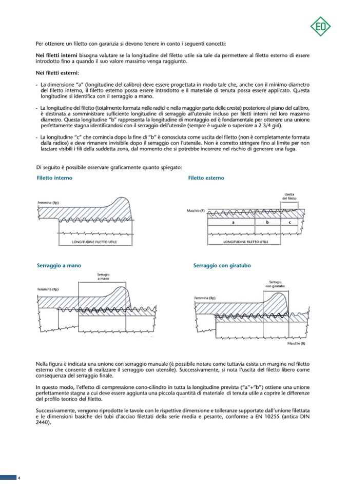 - La longitudine “c” che comincia dopo la fine di “b” è conosciuta come uscita del filetto (non è completamente formata