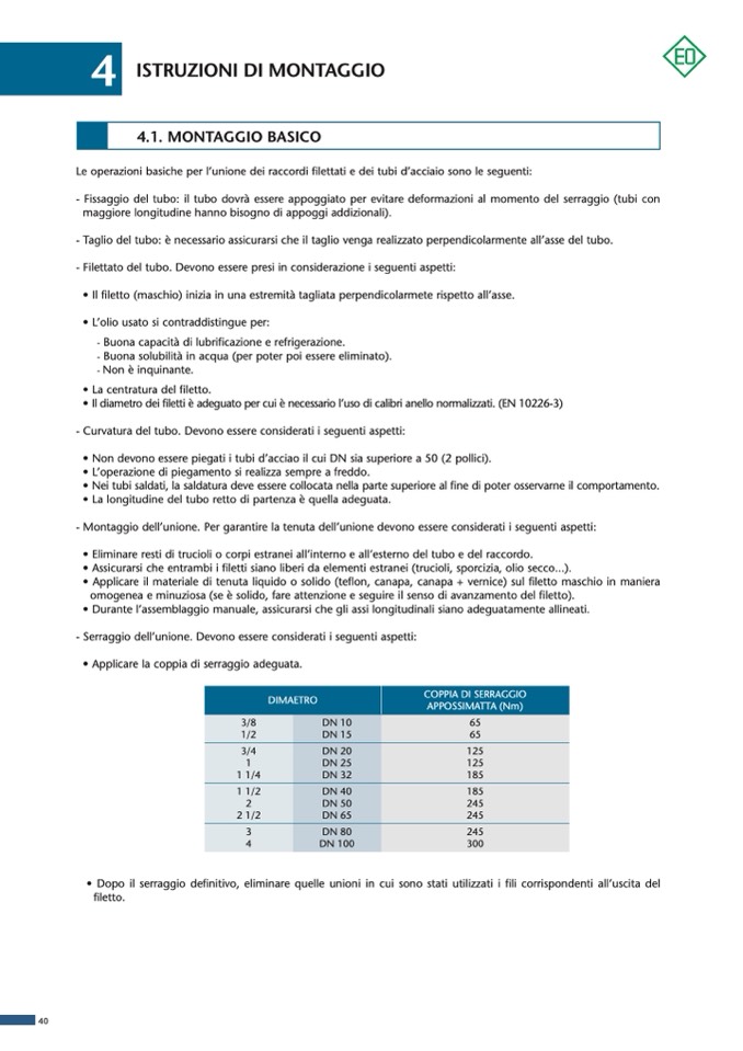 - Montaggio dell’unione. Per garantire la tenuta dell’unione devono essere considerati i seguenti aspetti: