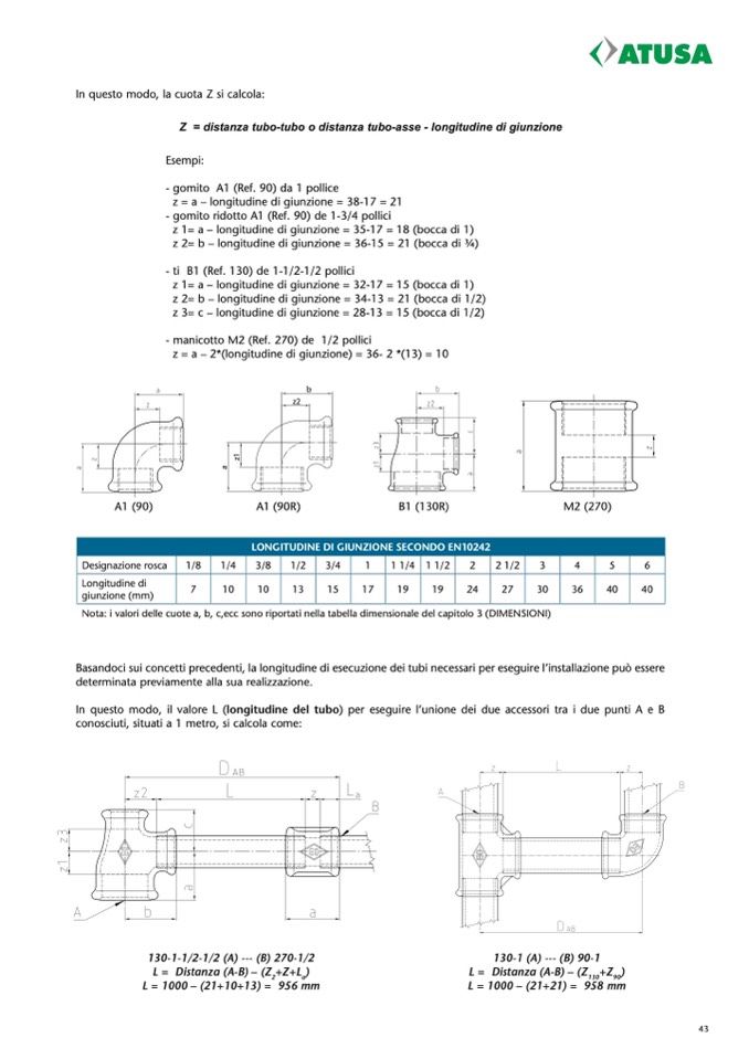 In questo modo, il valore L (longitudine del tubo) per eseguire l’unione dei due accessori tra i due punti A e B