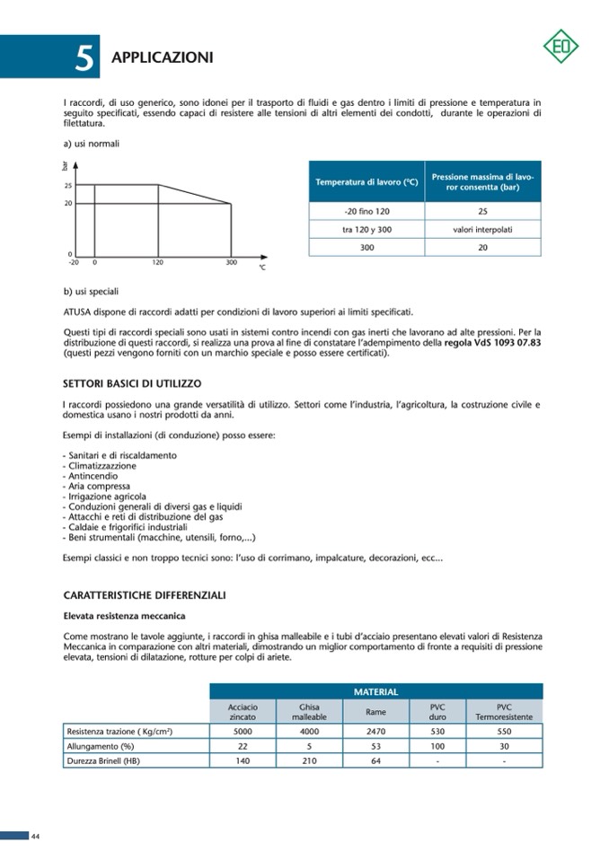 ATUSA dispone di raccordi adatti per condizioni di lavoro superiori ai limiti specificati.