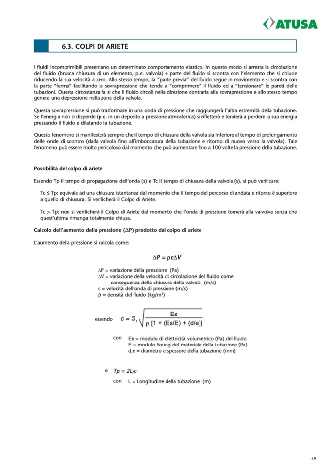 Calcolo dell’aumento della pressione (ΔP) prodotto dal colpo di ariete