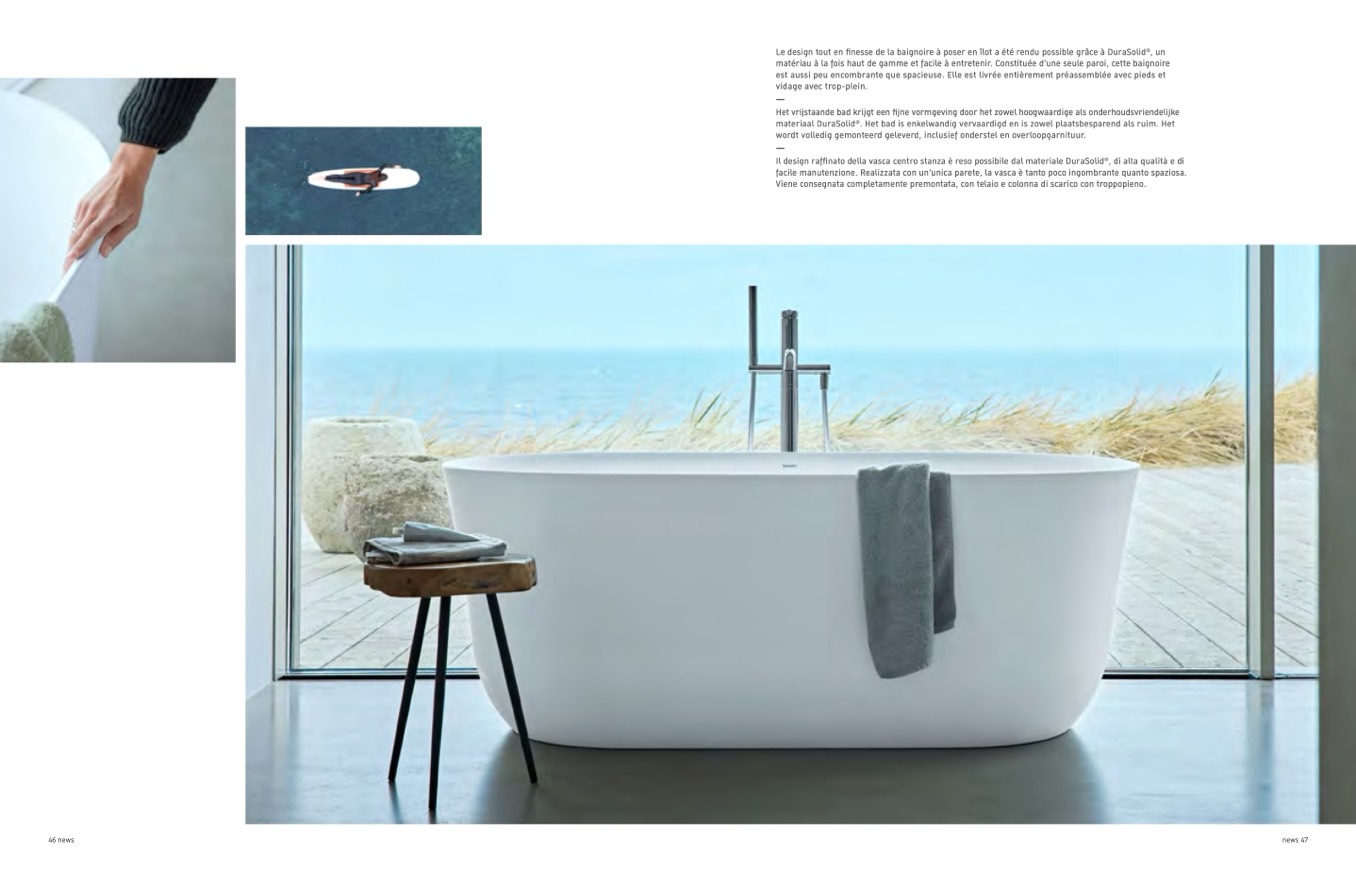 Le design tout en finesse de la baignoire à poser en îlot a été rendu possible grâce à DuraSolid