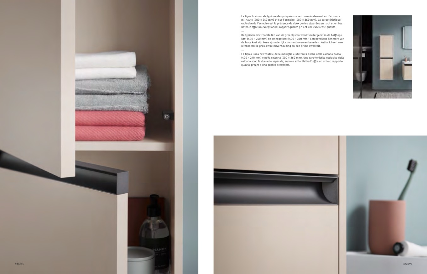 La ligne horizontale typique des poignées se retrouve également sur l’armoire