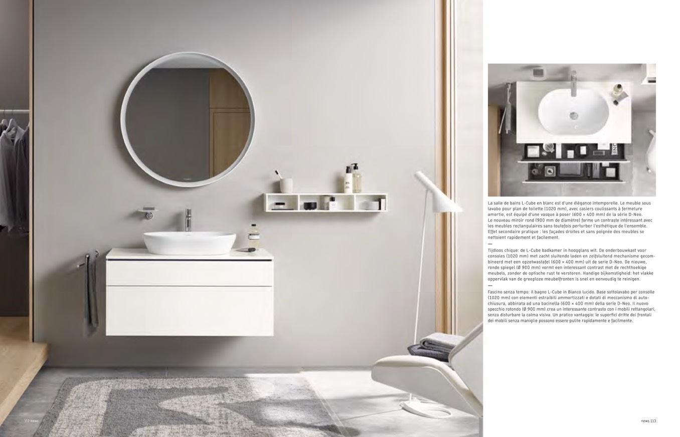 La salle de bains L-Cube en blanc est d’une élégance intemporelle. Le meuble sous