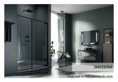 Pivot door on fixed element for niche