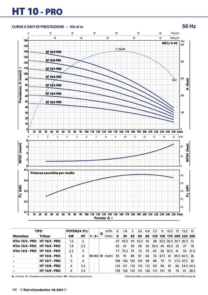CURVE E DATI DI PRESTAZIONE – HS=0 m