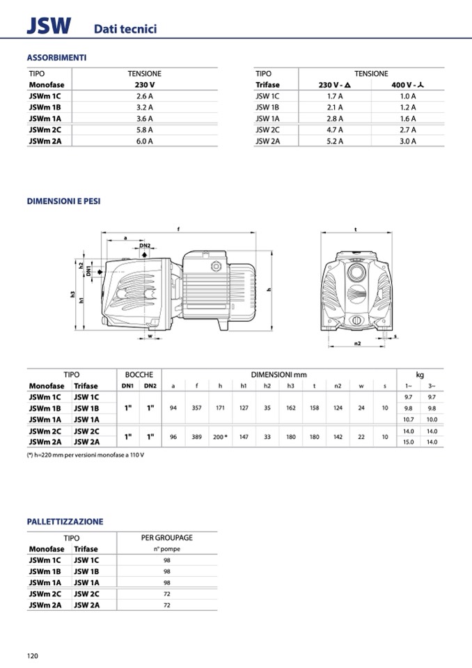 (*) h=220 mm per versioni monofase a 110 V