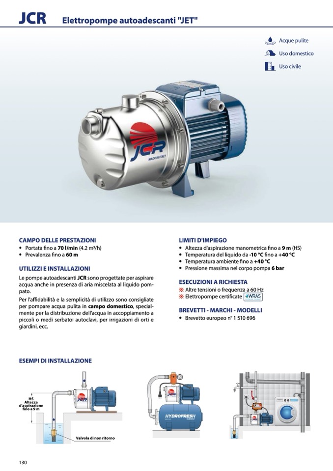 Le pompe autoadescanti JCR sono progettate per aspirare