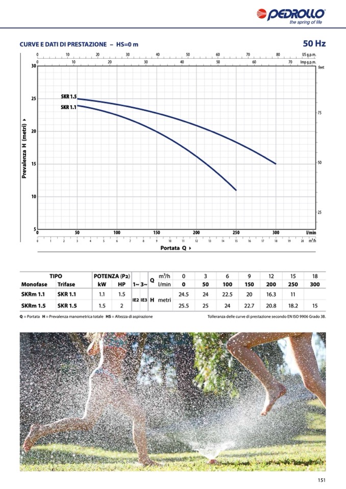 Q = Portata H = Prevalenza manometrica totale HS = Altezza di aspirazione
