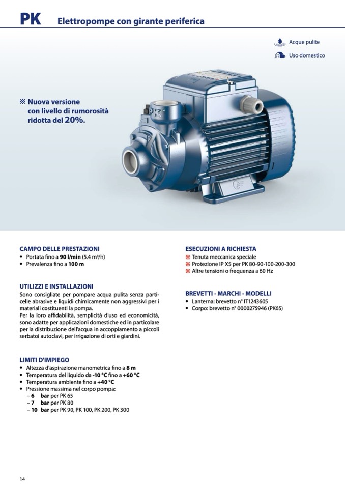 Sono consigliate per pompare acqua pulita senza parti-