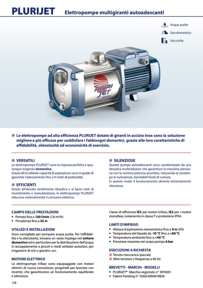 ※ Le elettropompe ad alta efficienza PLURIJET dotate di giranti in acciaio inox sono la soluzione