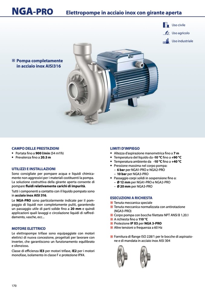 applicazioni quali lavaggi e circolazione liquidi di raffred-