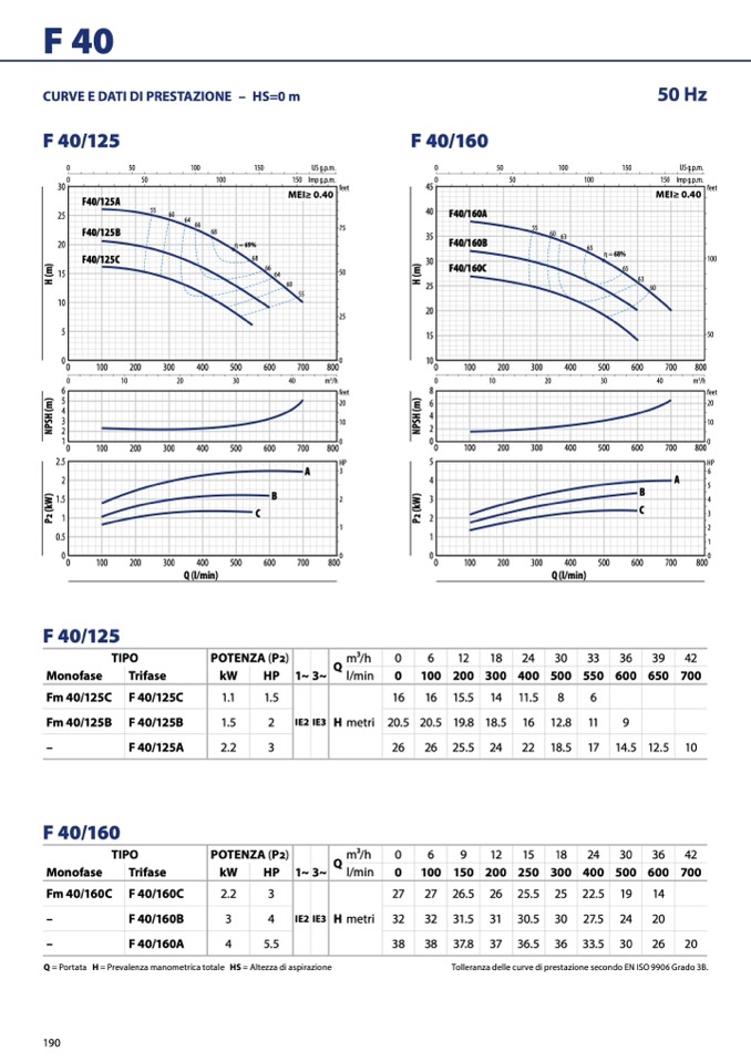 Q = Portata H = Prevalenza manometrica totale HS = Altezza di aspirazione