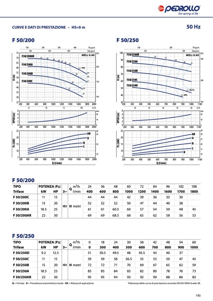 Tolleranza delle curve di prestazione secondo EN ISO 9906 Grado 3B.