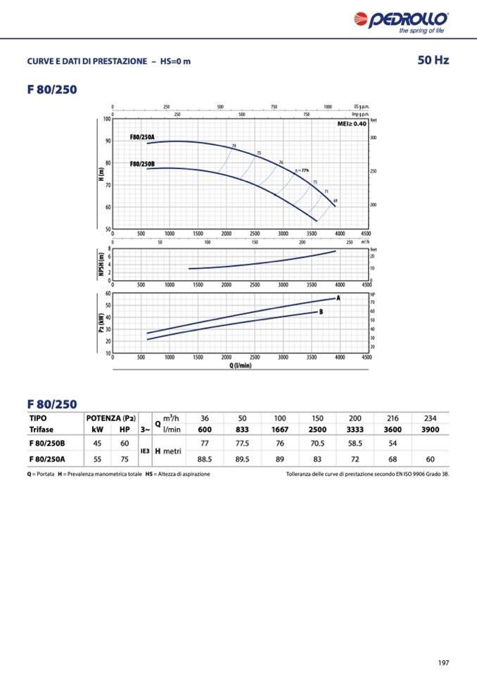 Tolleranza delle curve di prestazione secondo EN ISO 9906 Grado 3B.