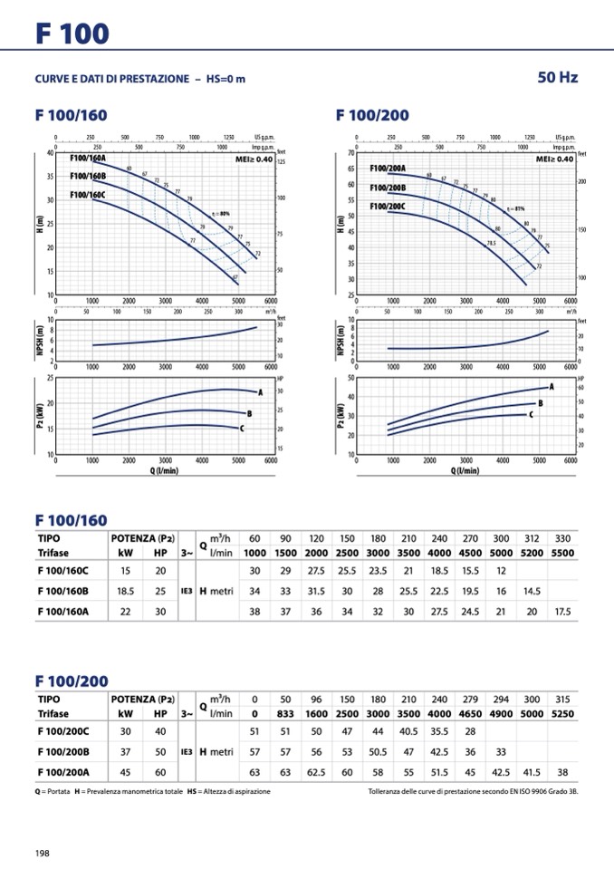 Tolleranza delle curve di prestazione secondo EN ISO 9906 Grado 3B.