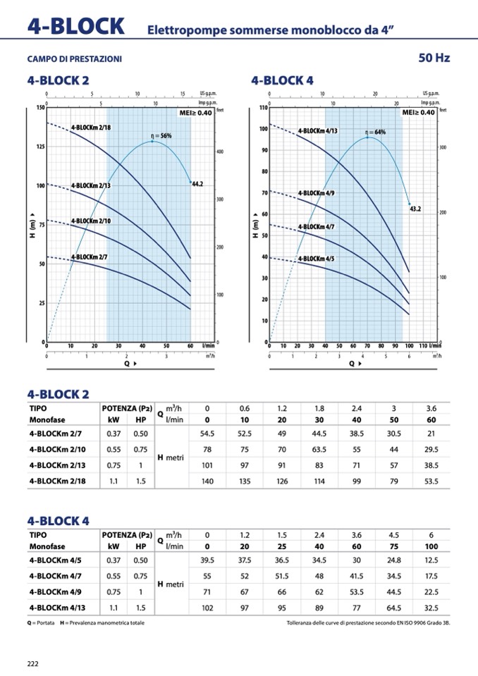 Tolleranza delle curve di prestazione secondo EN ISO 9906 Grado 3B.