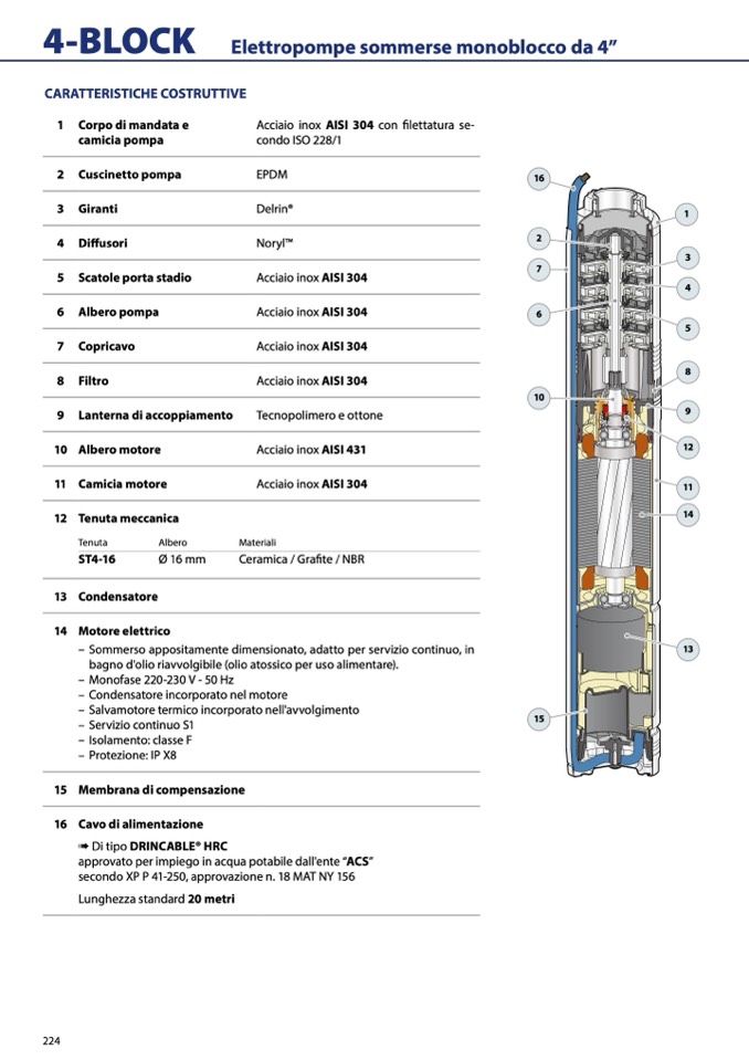 – Sommerso appositamente dimensionato, adatto per servizio continuo, in