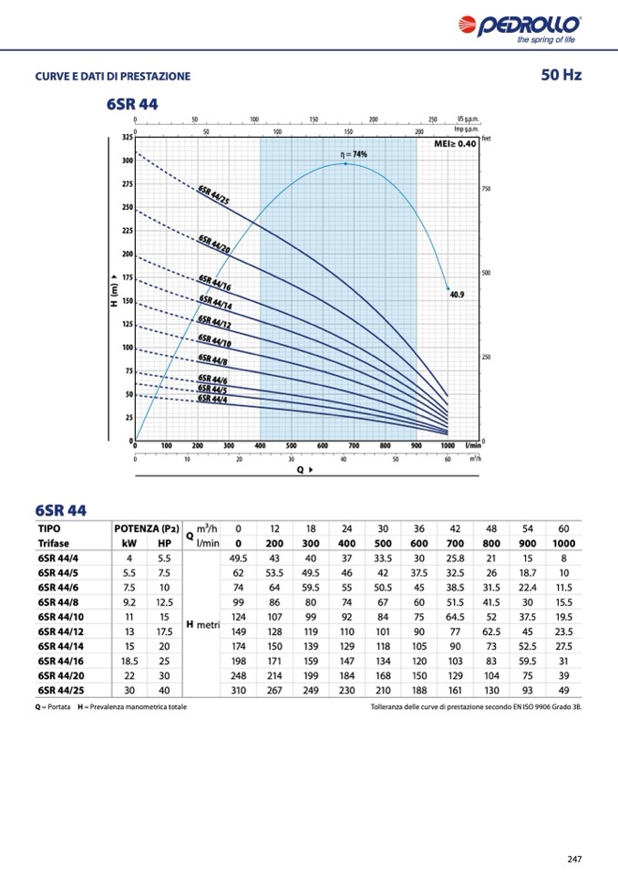 Tolleranza delle curve di prestazione secondo EN ISO 9906 Grado 3B.