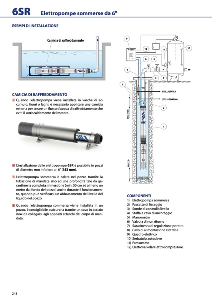 ※ L'installazione delle elettropompe 6SR è possibile in pozzi