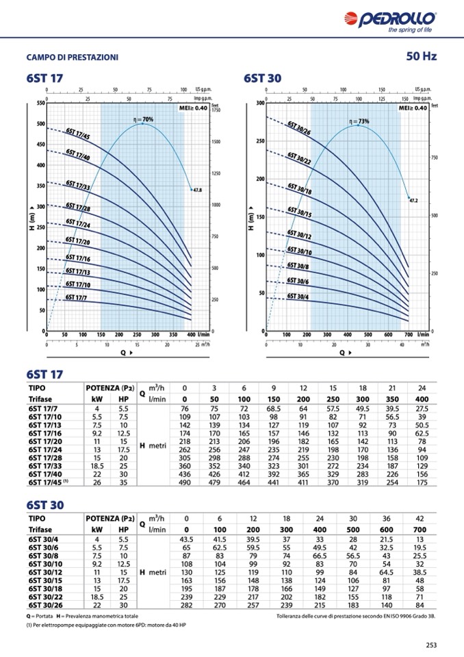(1) Per elettropompe equipaggiate con motore 6PD: motore da 40 HP