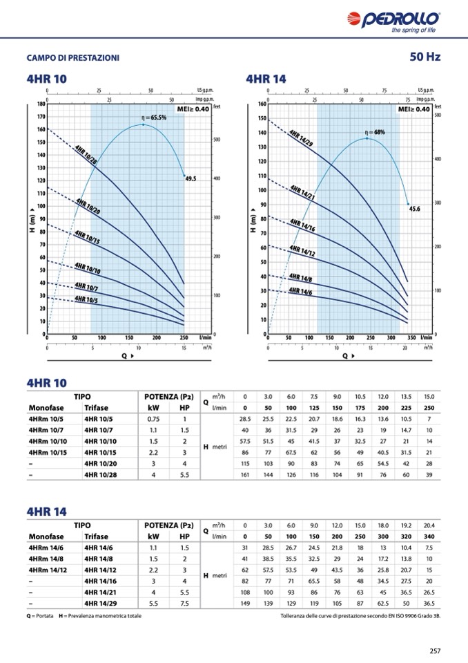 Tolleranza delle curve di prestazione secondo EN ISO 9906 Grado 3B.