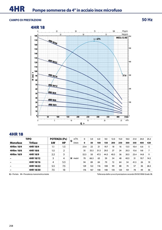 Tolleranza delle curve di prestazione secondo EN ISO 9906 Grado 3B.