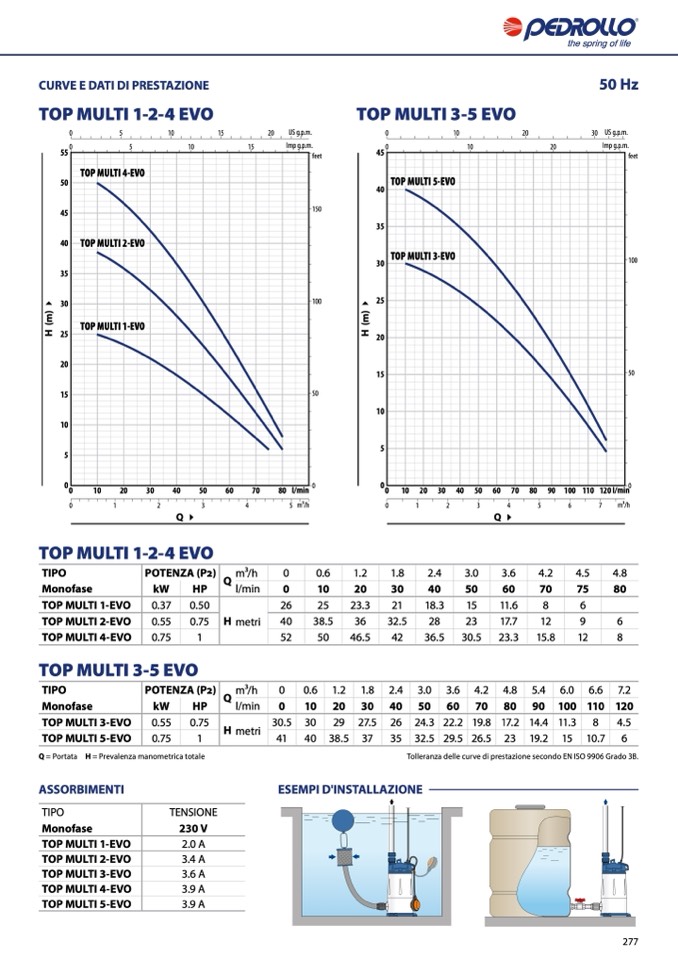 Tolleranza delle curve di prestazione secondo EN ISO 9906 Grado 3B.