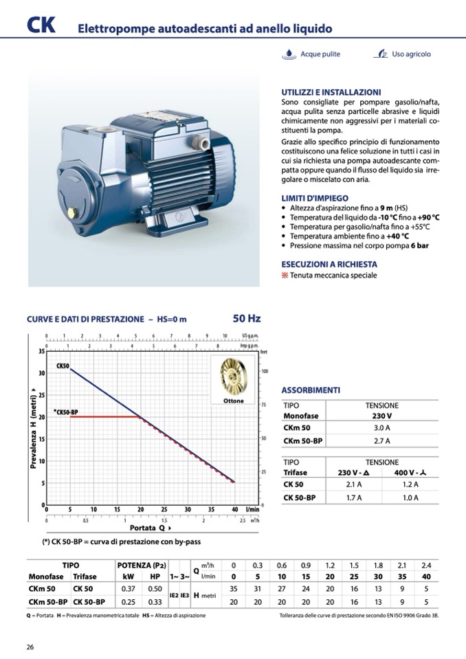 Q = Portata H = Prevalenza manometrica totale HS = Altezza di aspirazione