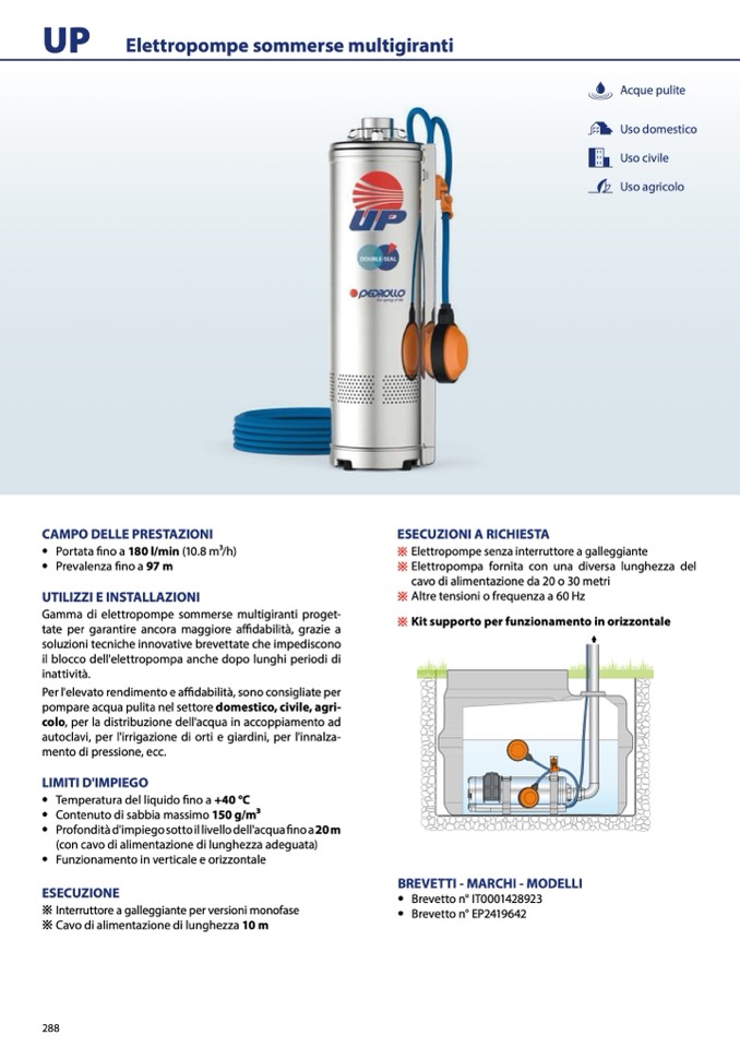 autoclavi, per l'irrigazione di orti e giardini, per l'innalza-