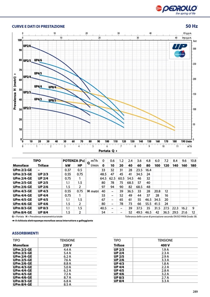 Q = Portata H = Prevalenza manometrica totale