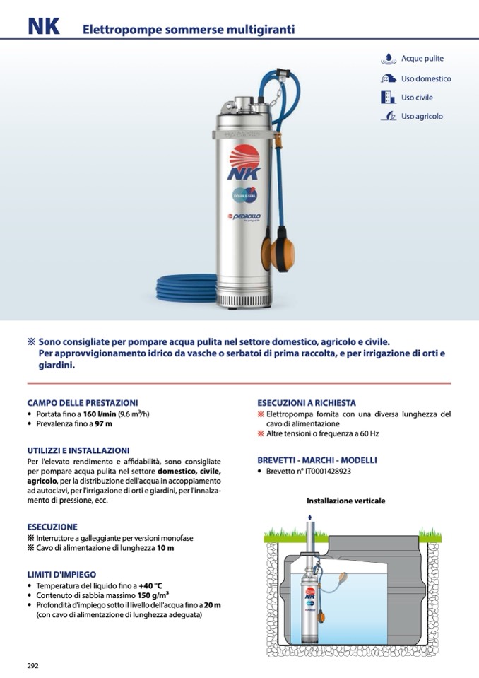 ※ Sono consigliate per pompare acqua pulita nel settore domestico, agricolo e civile.