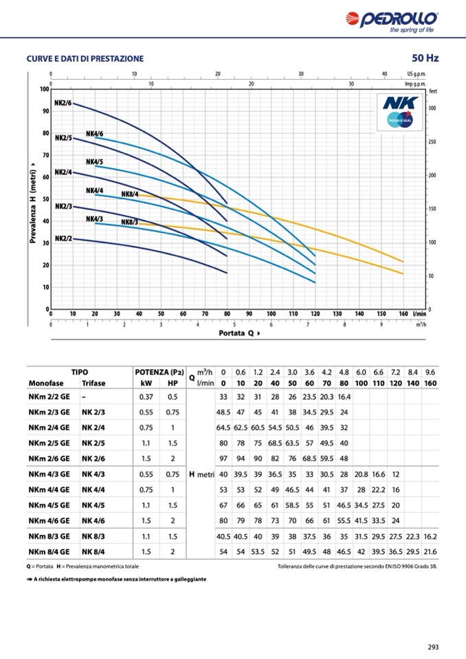 Q = Portata H = Prevalenza manometrica totale