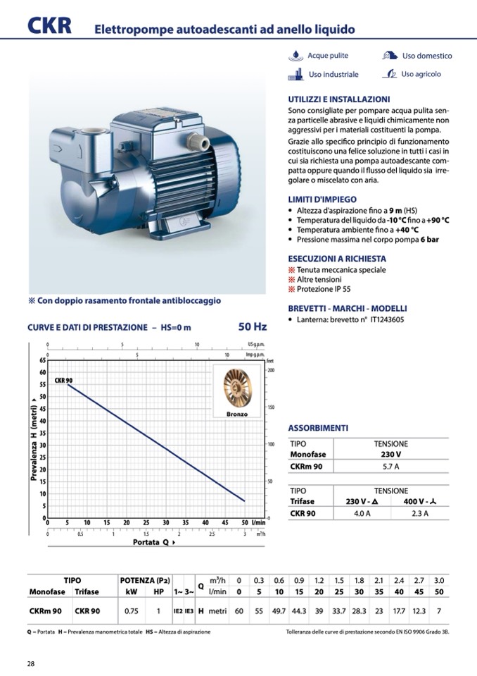 Q = Portata H = Prevalenza manometrica totale HS = Altezza di aspirazione