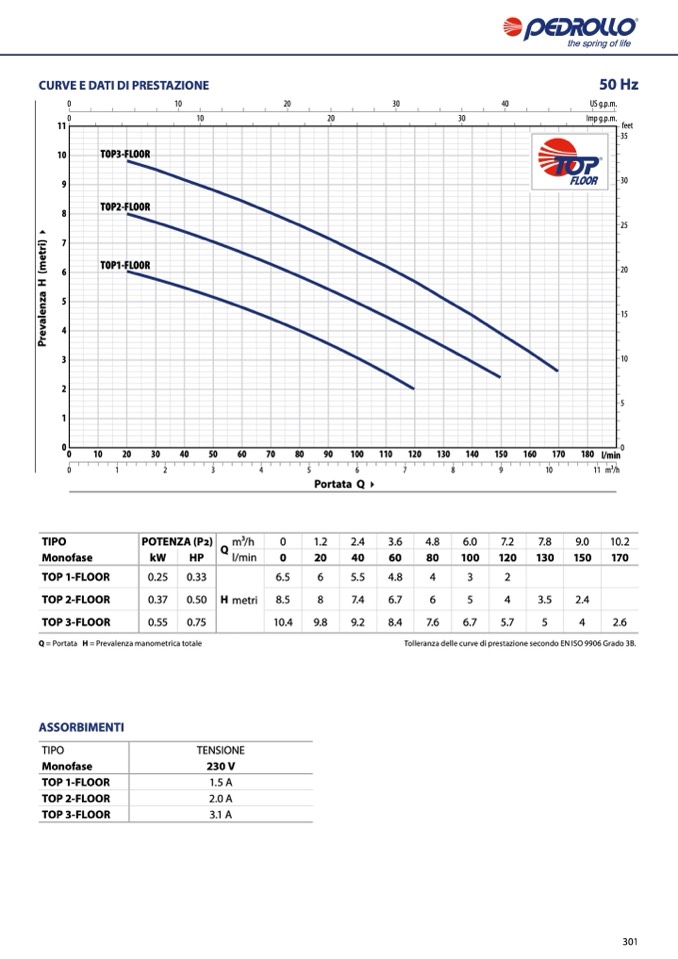 Tolleranza delle curve di prestazione secondo EN ISO 9906 Grado 3B.