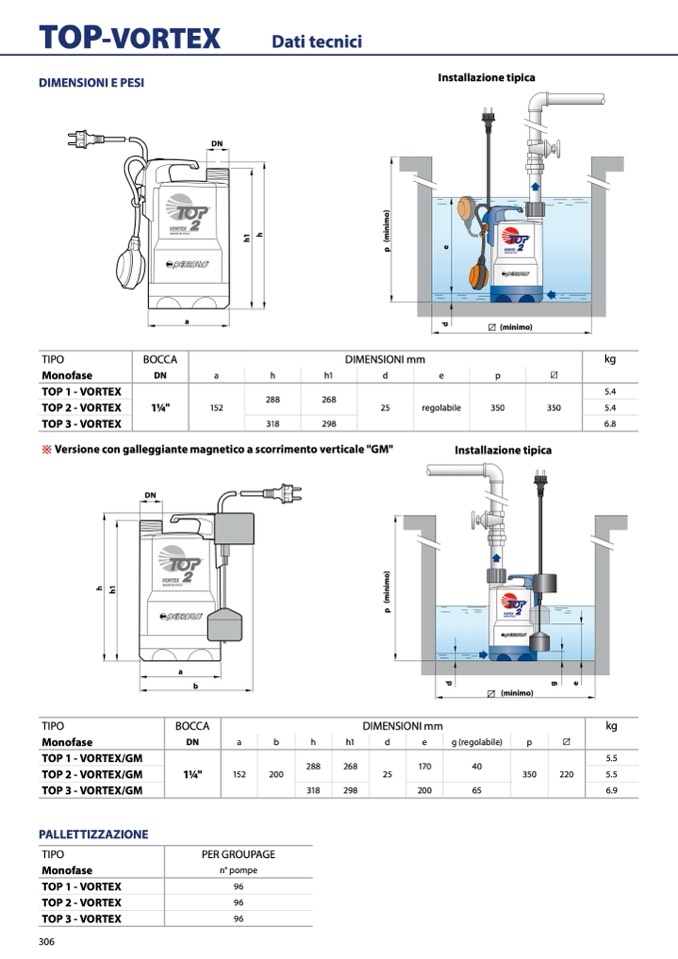※ Versione con galleggiante magnetico a scorrimento verticale "GM"