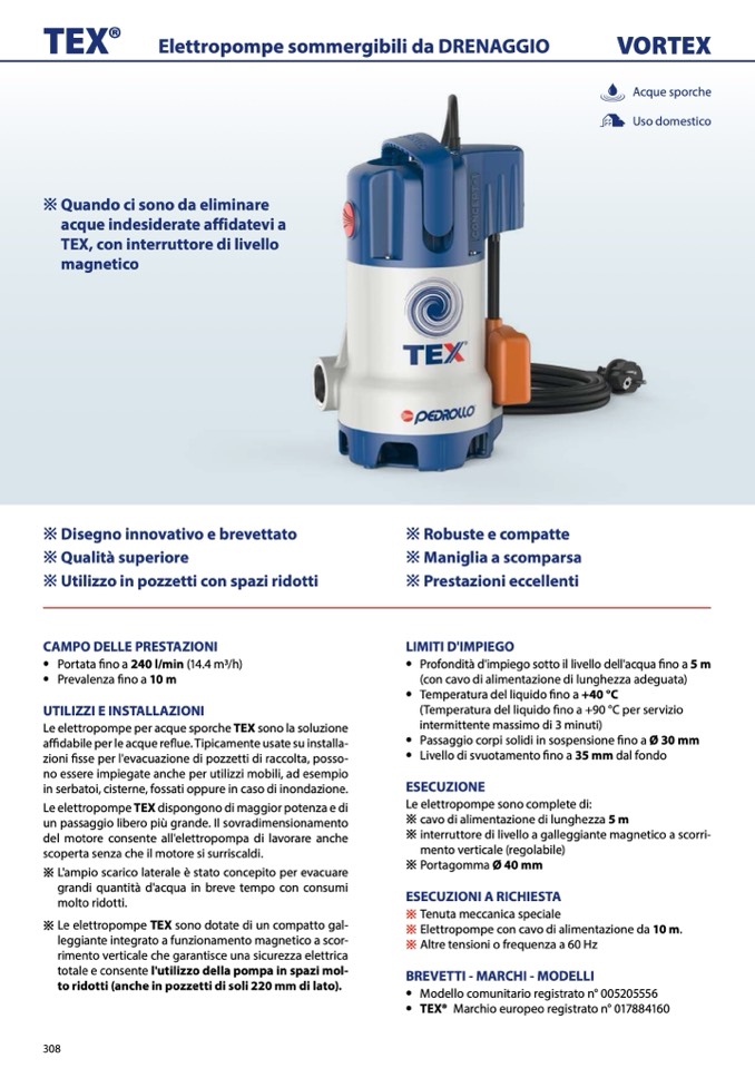 ※ Le elettropompe TEX sono dotate di un compatto gal-