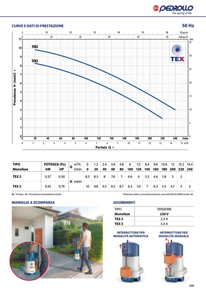 Q = Portata H = Prevalenza manometrica totale