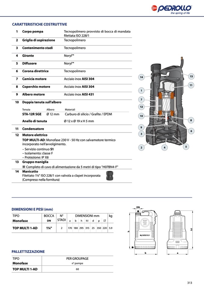 TOP MULTI-AD: Monofase 230 V - 50 Hz con salvamotore termico