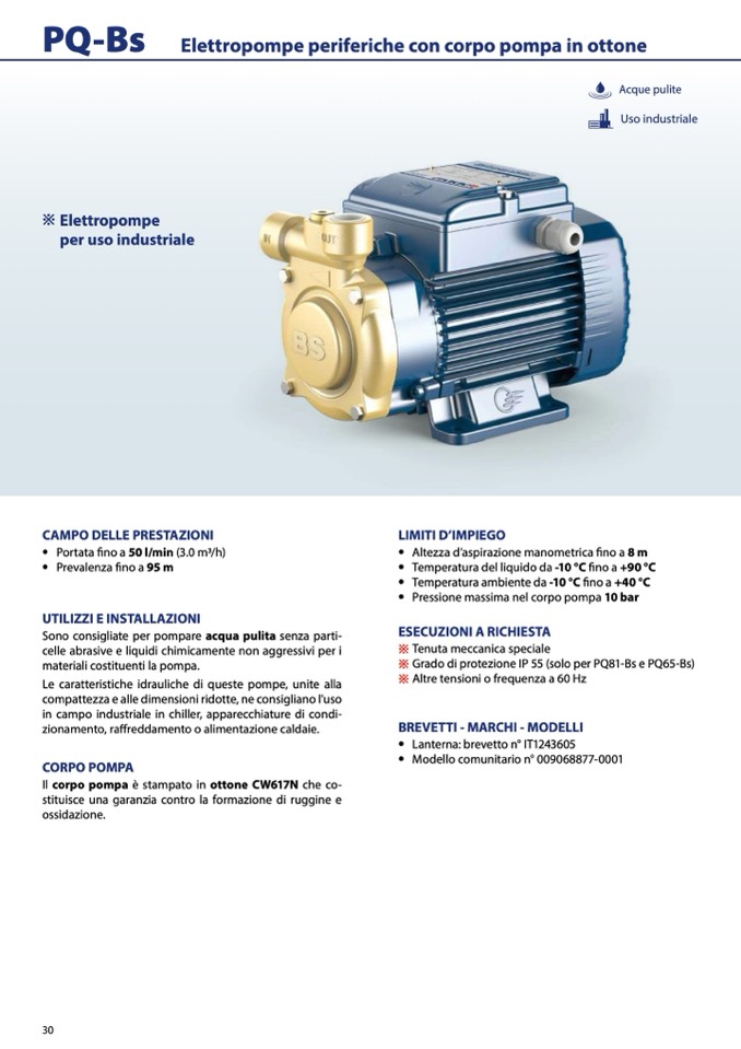 Elettropompe periferiche con corpo pompa in ottone