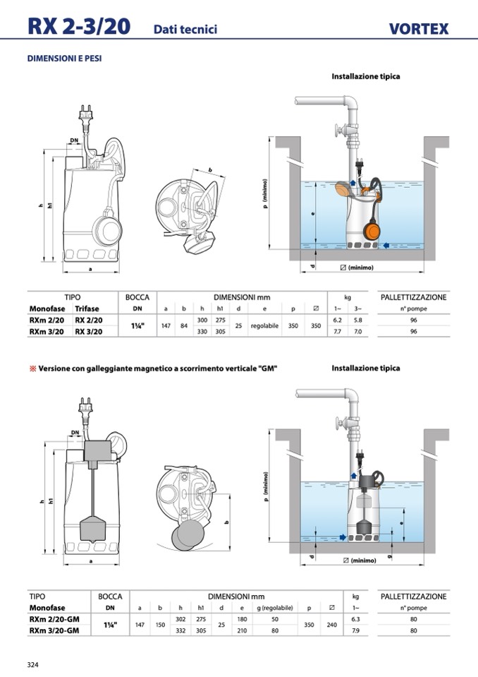 ※ Versione con galleggiante magnetico a scorrimento verticale "GM"
