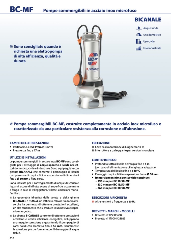 Le pompe sommergibili in acciaio inox BC-MF sono consi-