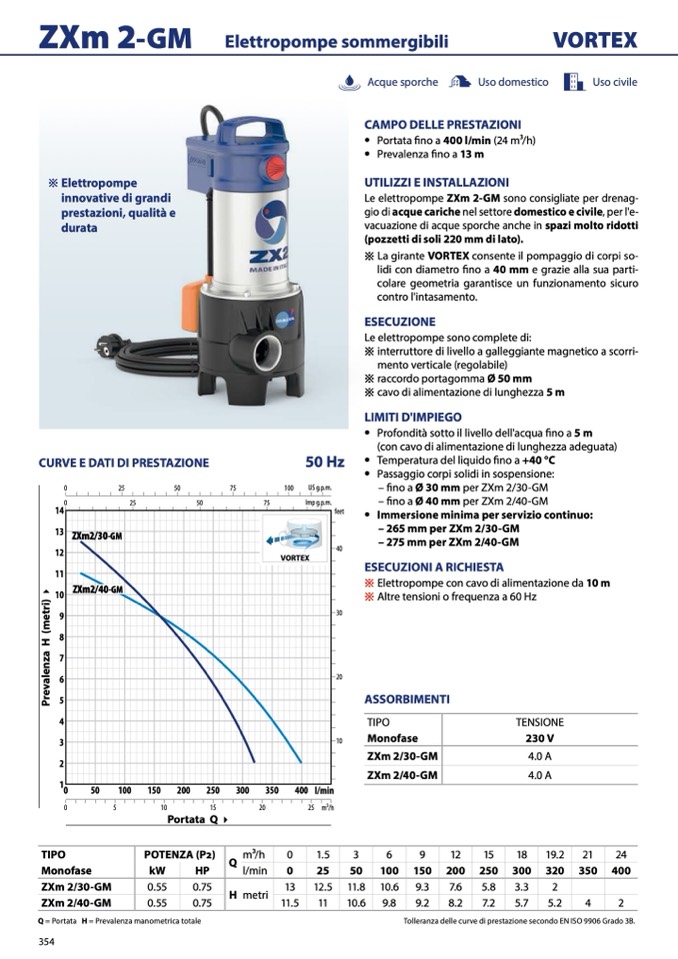 Le elettropompe ZXm 2-GM sono consigliate per drenag-