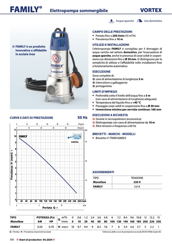 L'elettropompa FAMILY è consigliata per il drenaggio di