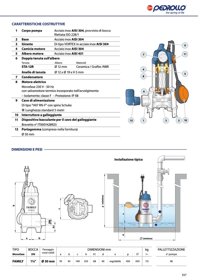 – Isolamento: classe F – Protezione: IP X8