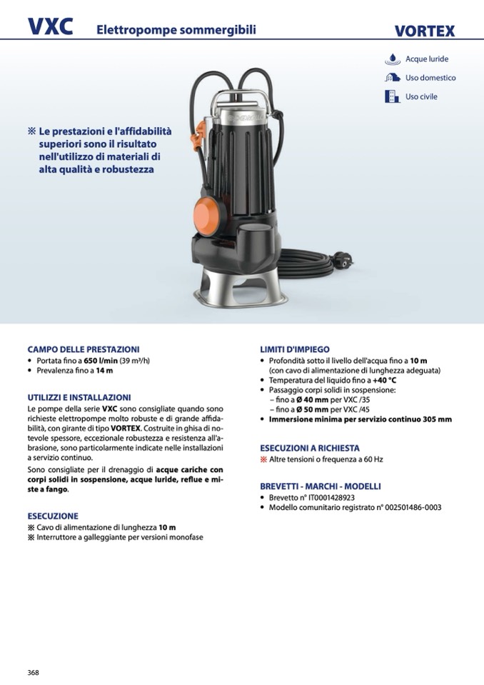bilità, con girante di tipo VORTEX. Costruite in ghisa di no-