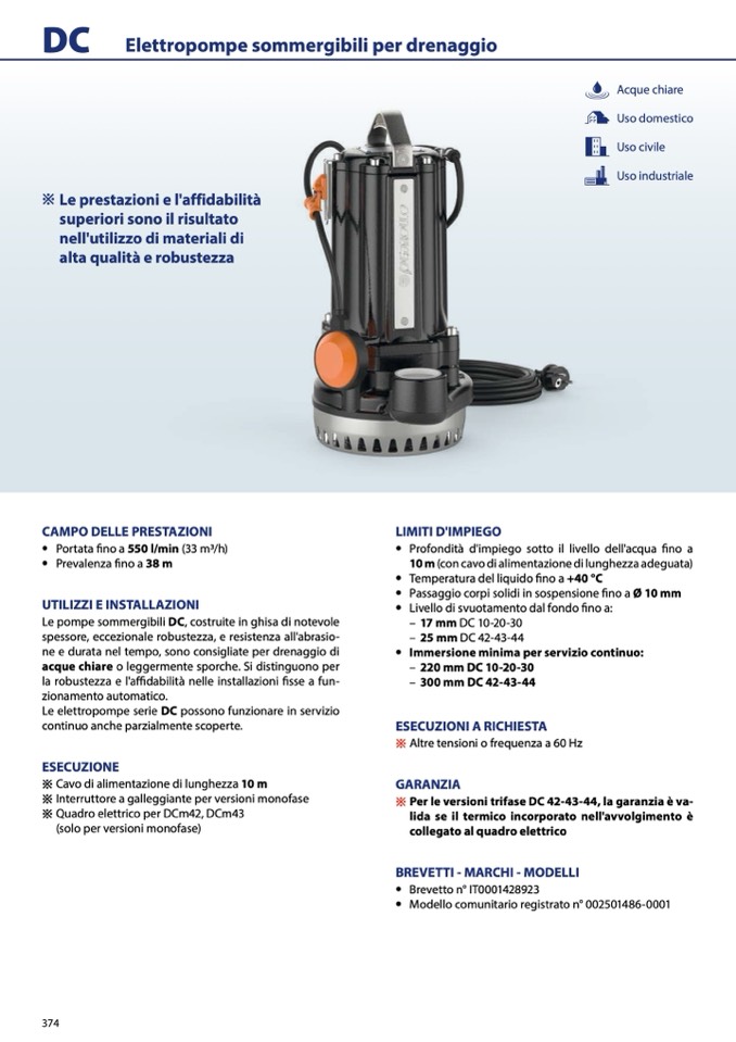 Elettropompe sommergibili per drenaggio