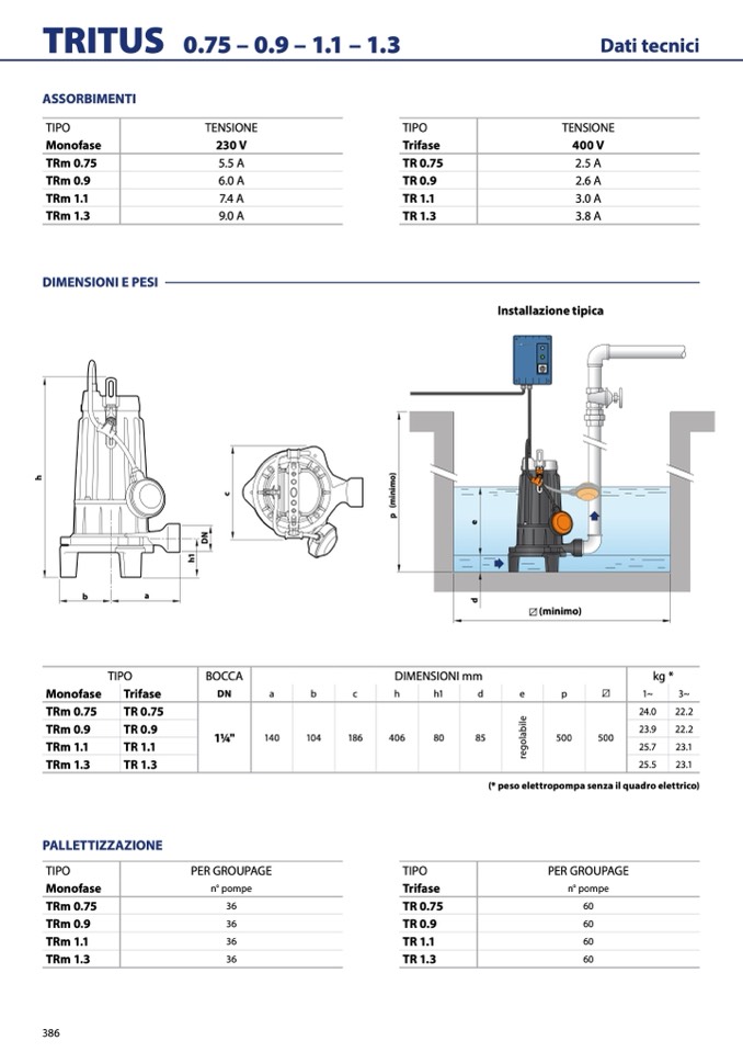 (* peso elettropompa senza il quadro elettrico)