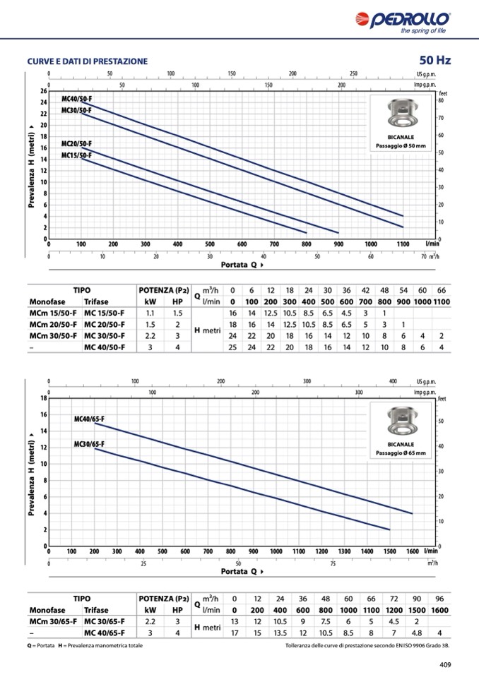 Q = Portata H = Prevalenza manometrica totale