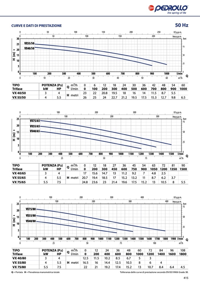 Tolleranza delle curve di prestazione secondo EN ISO 9906 Grado 3B.
